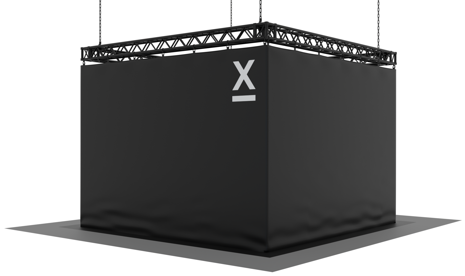 The Halo Frame can be hung from the ceiling on hanging points. The advantage of the Halo Frame is that it does not require vertical support and the entire system can be lifted and hung. This option is ideal for applications where free space is required.